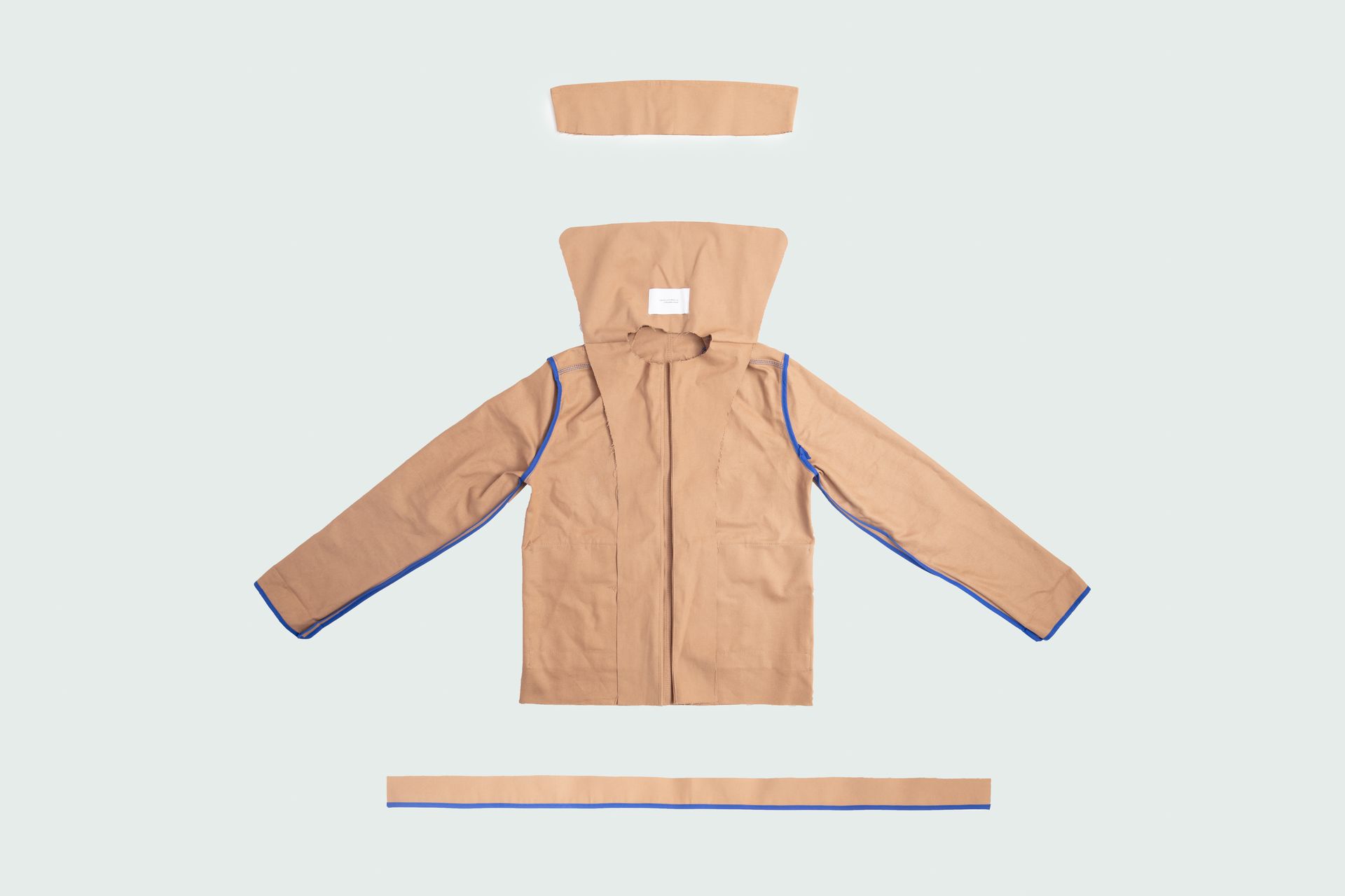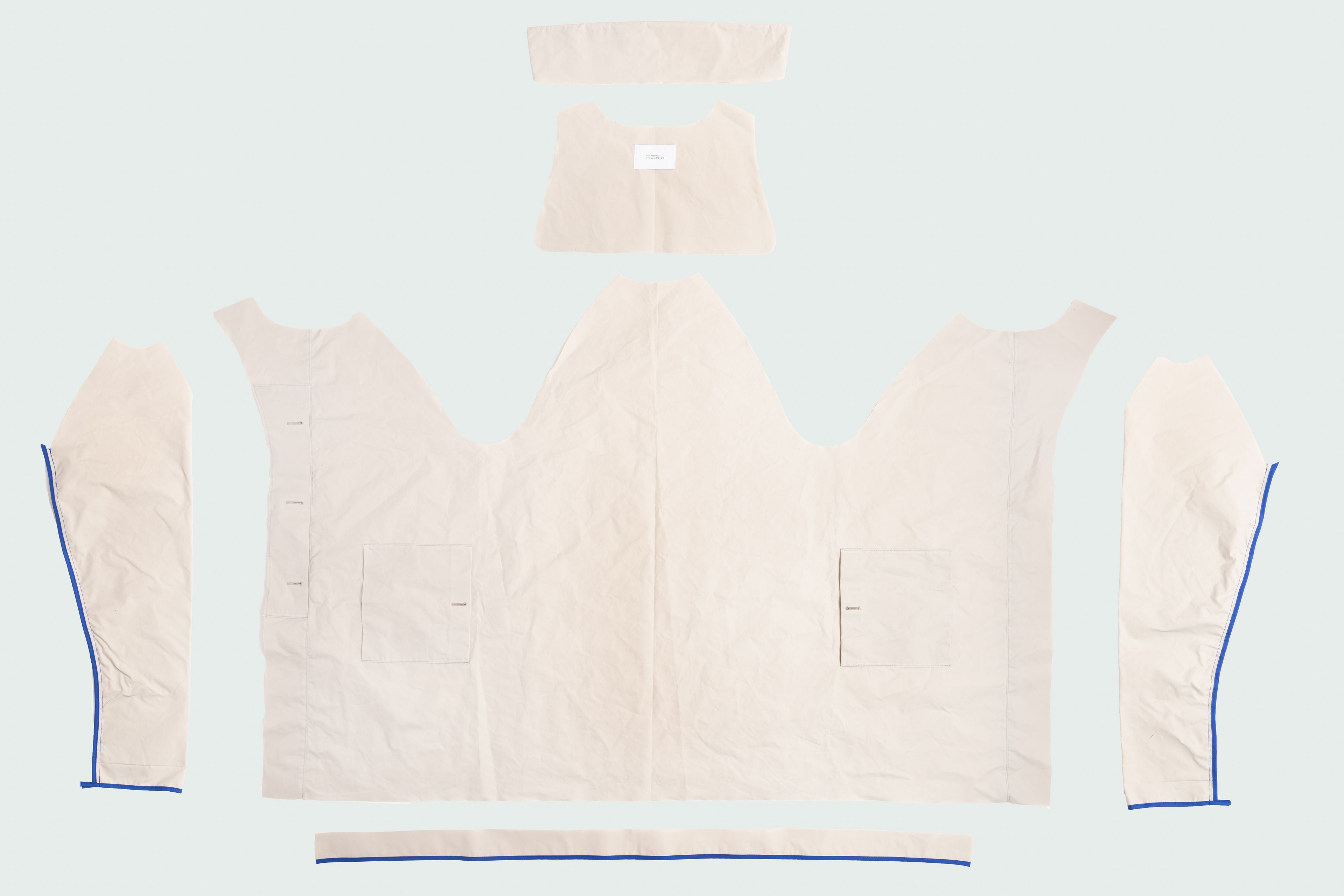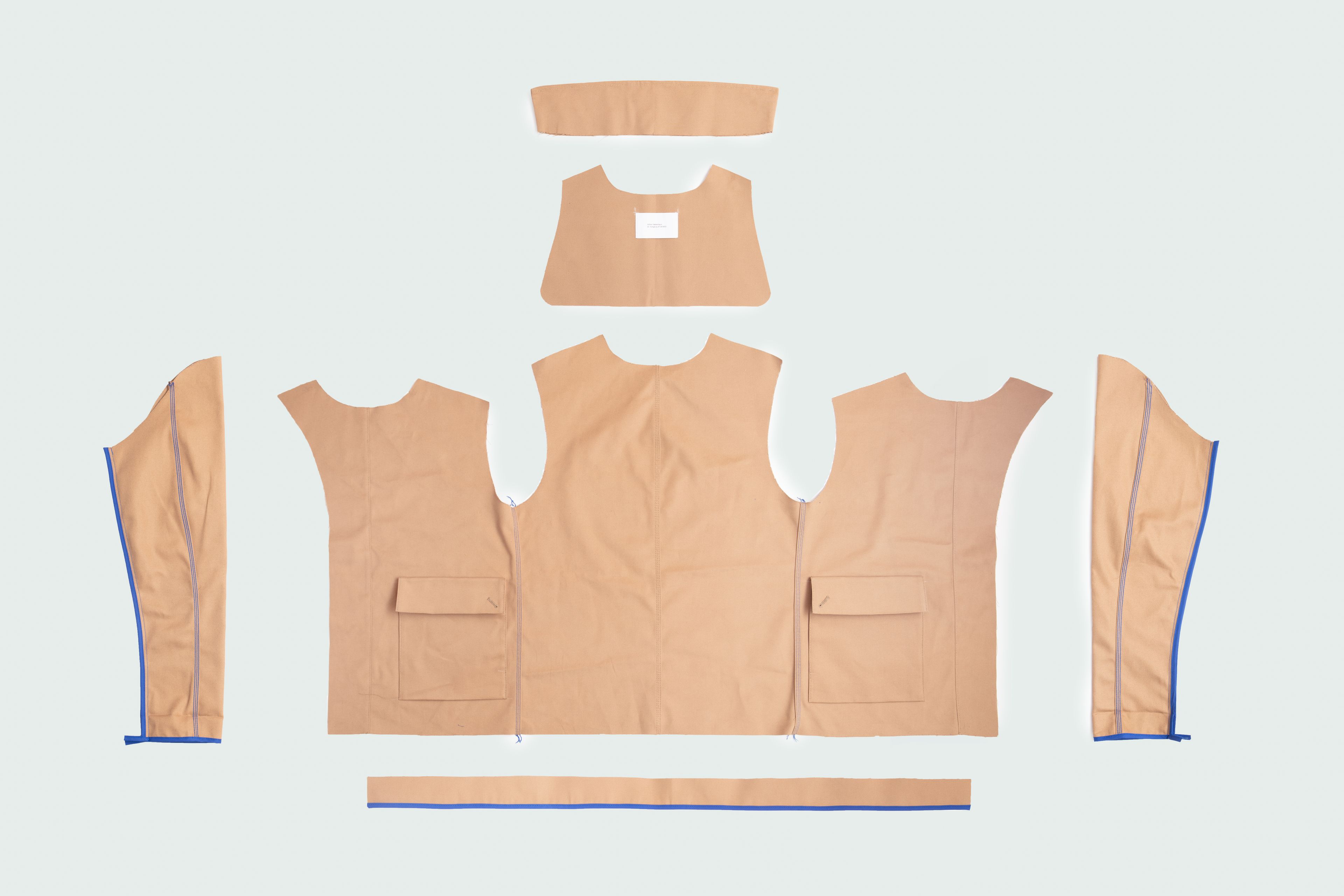 A key principle in our design philosophy is the focus on local production. We honor a minimalist approach, where each pattern piece is carefully considered for its functionality and ease of production. Our goal is to minimize the number of pattern pieces, only adding seam lines if they serve a purpose. We emphasize the aesthetic of using large fabric pieces that fluently drape around the body untouched by seams. The approach of a streamlined design process and emphasizing the beauty of minimalism is a key advantage in terms of local production. Every garment is crafted directly in our Copenhagen workshop, allowing us to create small quantities with various style options and fabric choices within the same production batch. This strategy helps us avoid overproduction. We developed a modular system of a few pattern pieces categorized in A, B and C. A : jackets, coats, dress shirts, blazers, sweatshirts and t-shirts B : trousers C : skirts, dresses and tops