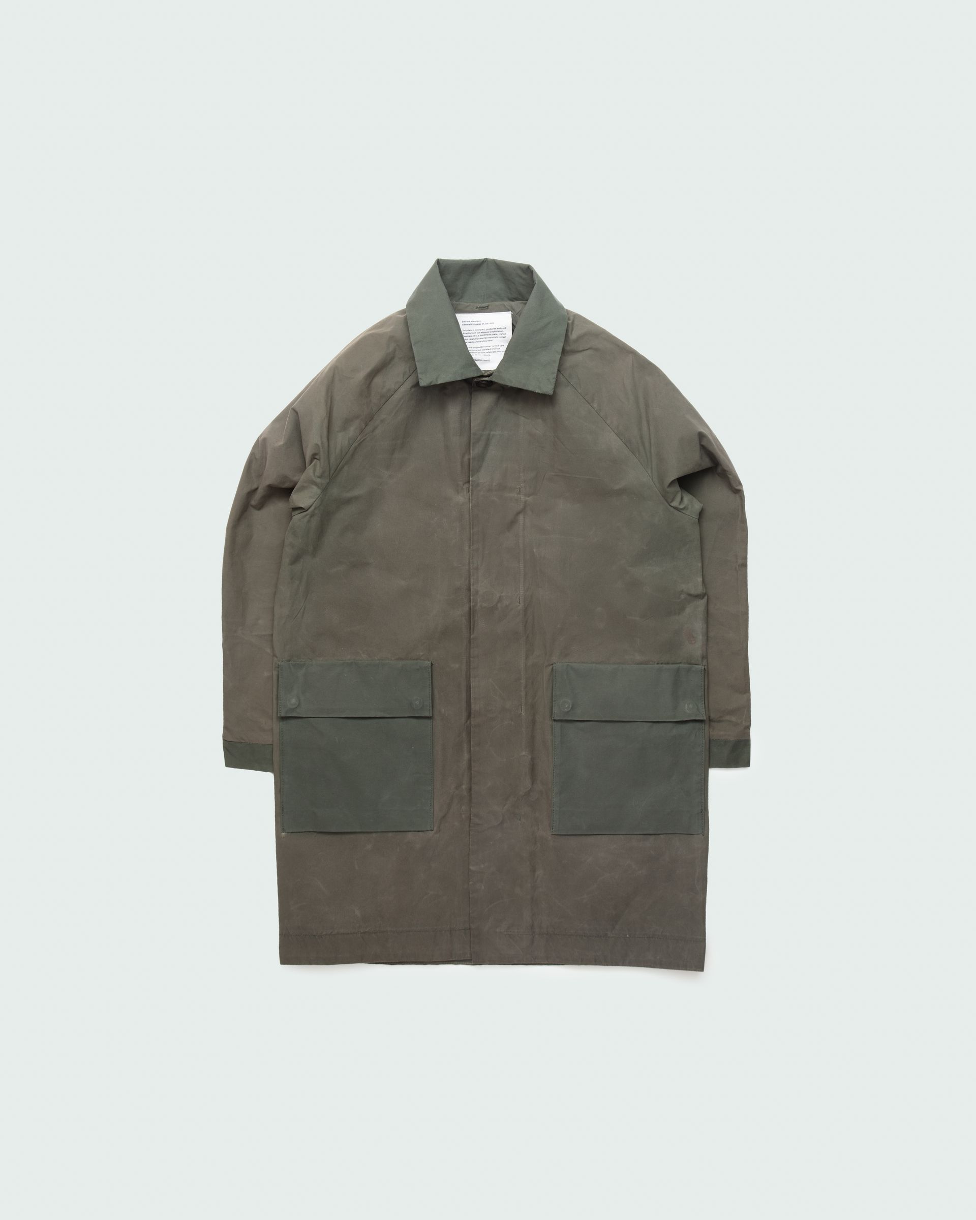 Jacket weared everyday for 2 years. New collar, pockets and cuff. Drawing inspiration from traditional Japanese modular building techniques, where components can be easily interchanged in case of damage, we envision our garment construction as a series of building blocks. Jackets and coats have areas that are more susceptible to accidental damage and wear and tear. We have developed a modular system that allows for easy replacement of vulnerable parts on our clothing, ensuring longevity and durability.If a cuff or any other part of our garment becomes worn out or damaged, it can simply be swapped with a new one. Additionally, we offer hole repair and reinforcement services for exposed areas.With our modular design and repair services, we significantly extend the lifespan of the item, as you no longer need to replace the entire piece due to a single damaged section.