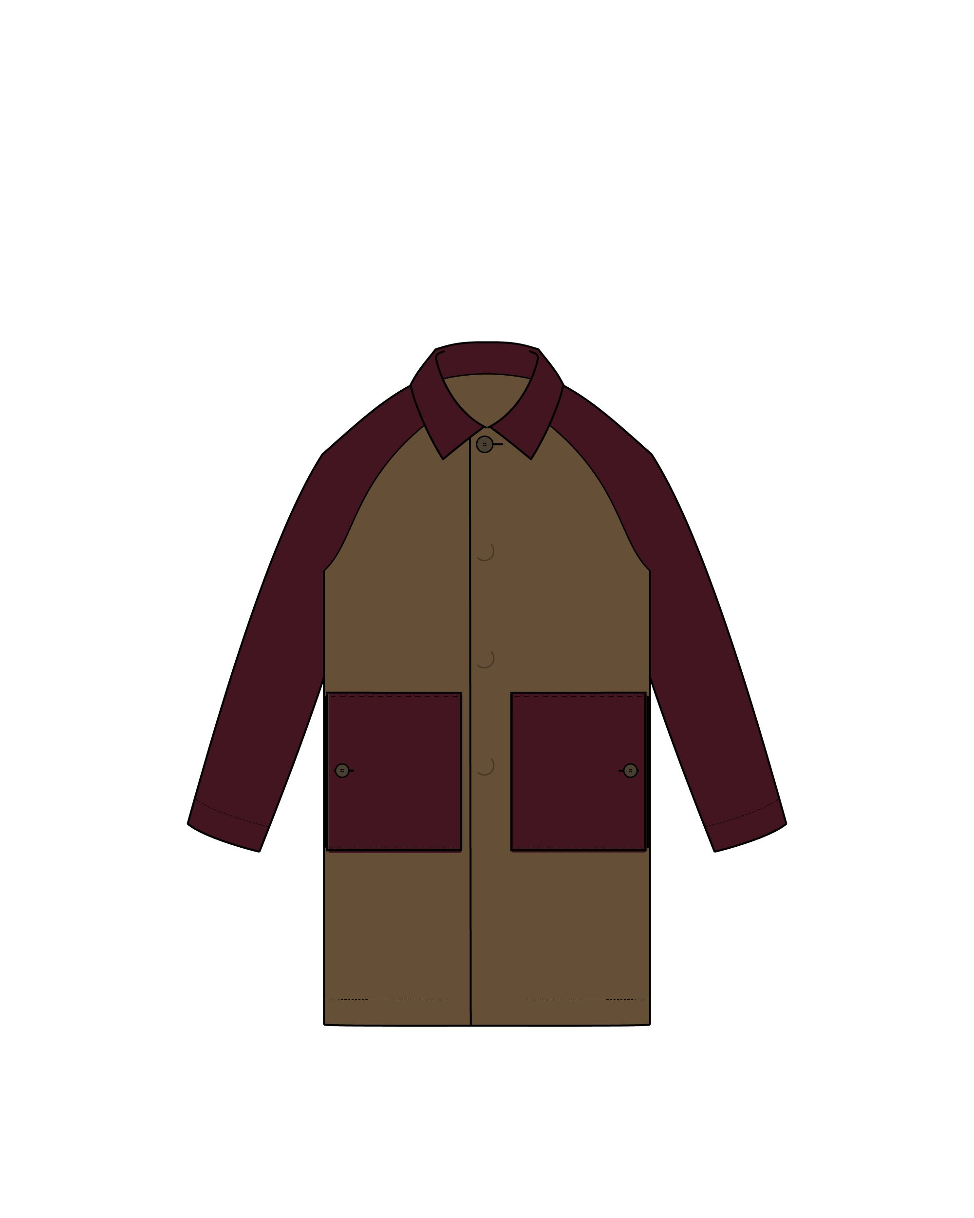 Our unibody principle is used in both raglan and conventional shoulders, where a large piece of cut-out fabric goes around the back and side of the body without side seams and back seams, creating a sculptural and clean expression. This principle is applied on our jackets, coats and shirts.