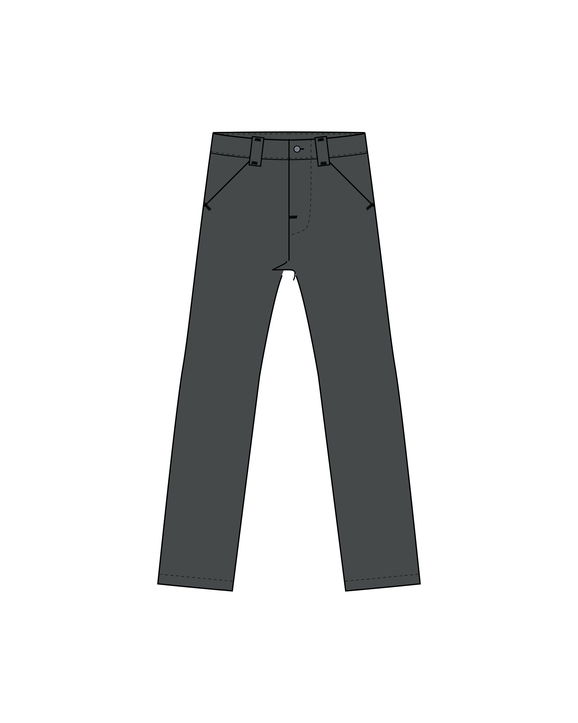 The base principle on these trousers is to avoid side seams and have one continuous piece of fabric for each leg. The front pockets are sewn directly into the darts, which graduate from the hip to the waist.