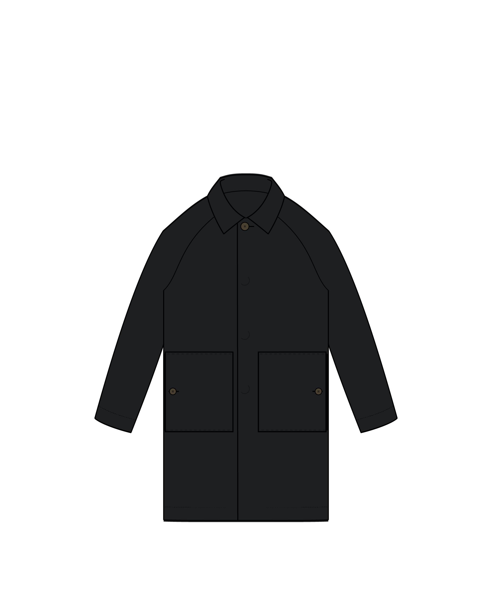Our unibody principle is used in both raglan and conventional shoulders, where a large piece of cut-out fabric goes around the back and side of the body without side seams and back seams, creating a sculptural and clean expression. This principle is applied on our jackets, coats and shirts.