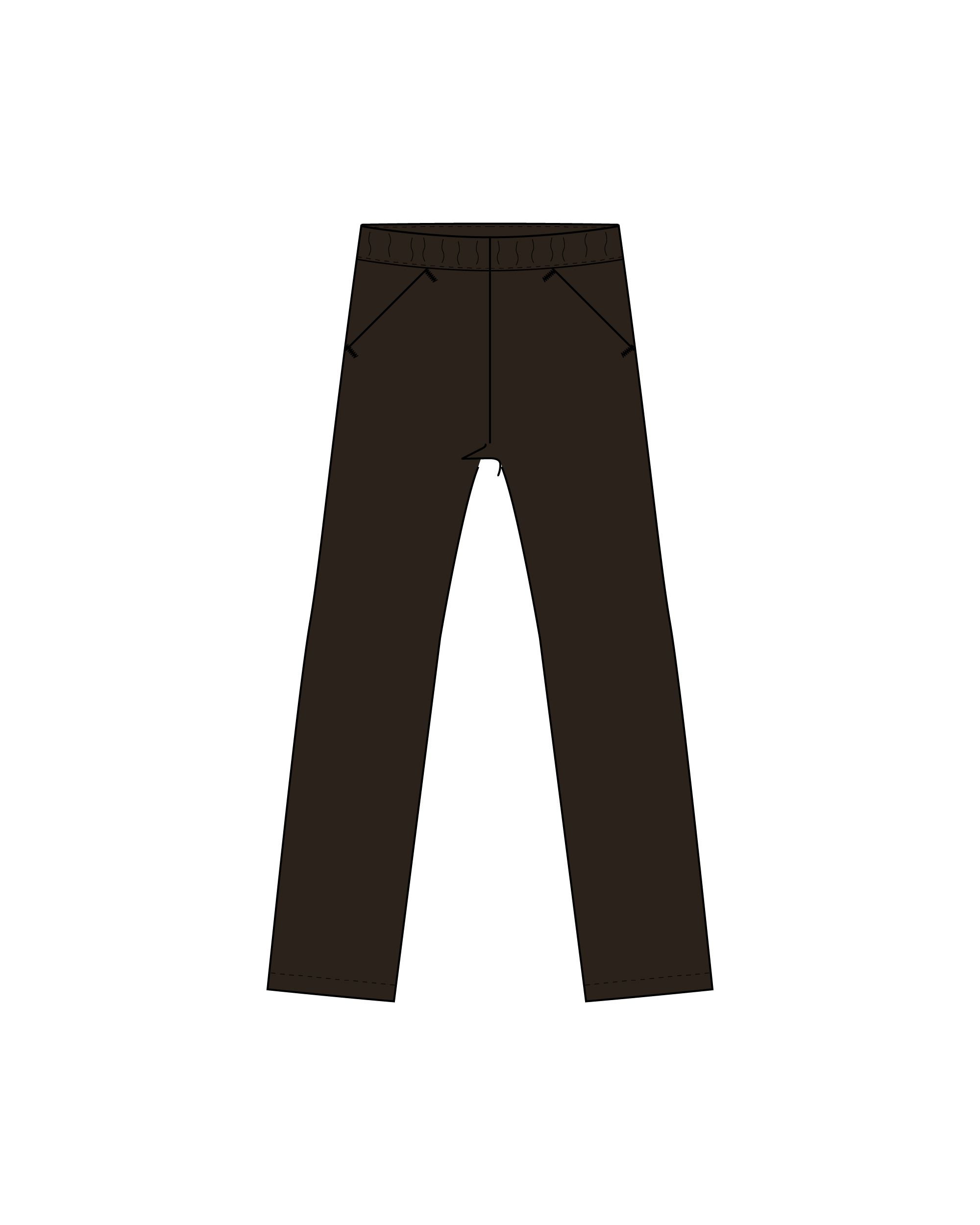 The base principle on these trousers is to avoid side seams and have one continuous piece of fabric for each leg. The front pockets are sewn directly into the darts, which graduate from the hip to the waist.