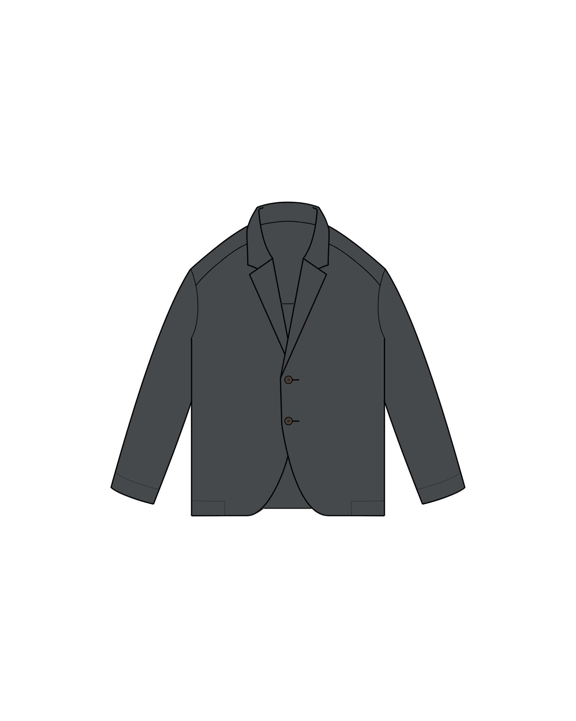 Our unibody principle is used in both raglan and conventional shoulders, where a large piece of cut-out fabric goes around the back and side of the body without side seams and back seams, creating a sculptural and clean expression. This principle is applied on our jackets, coats and shirts.