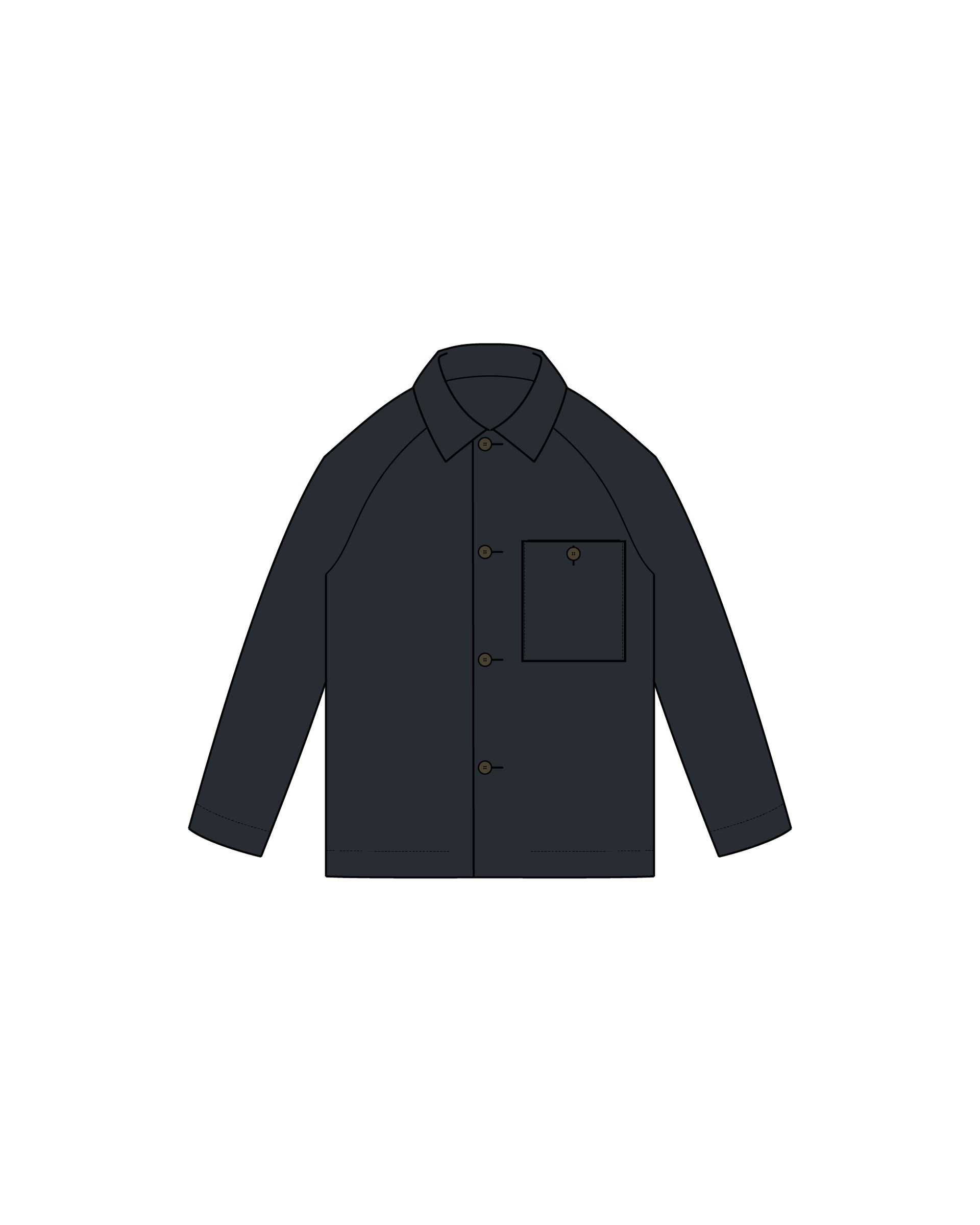 Our unibody principle is used in both raglan and conventional shoulders, where a large piece of cut-out fabric goes around the back and side of the body without side seams and back seams, creating a sculptural and clean expression. This principle is applied on our jackets, coats and shirts.