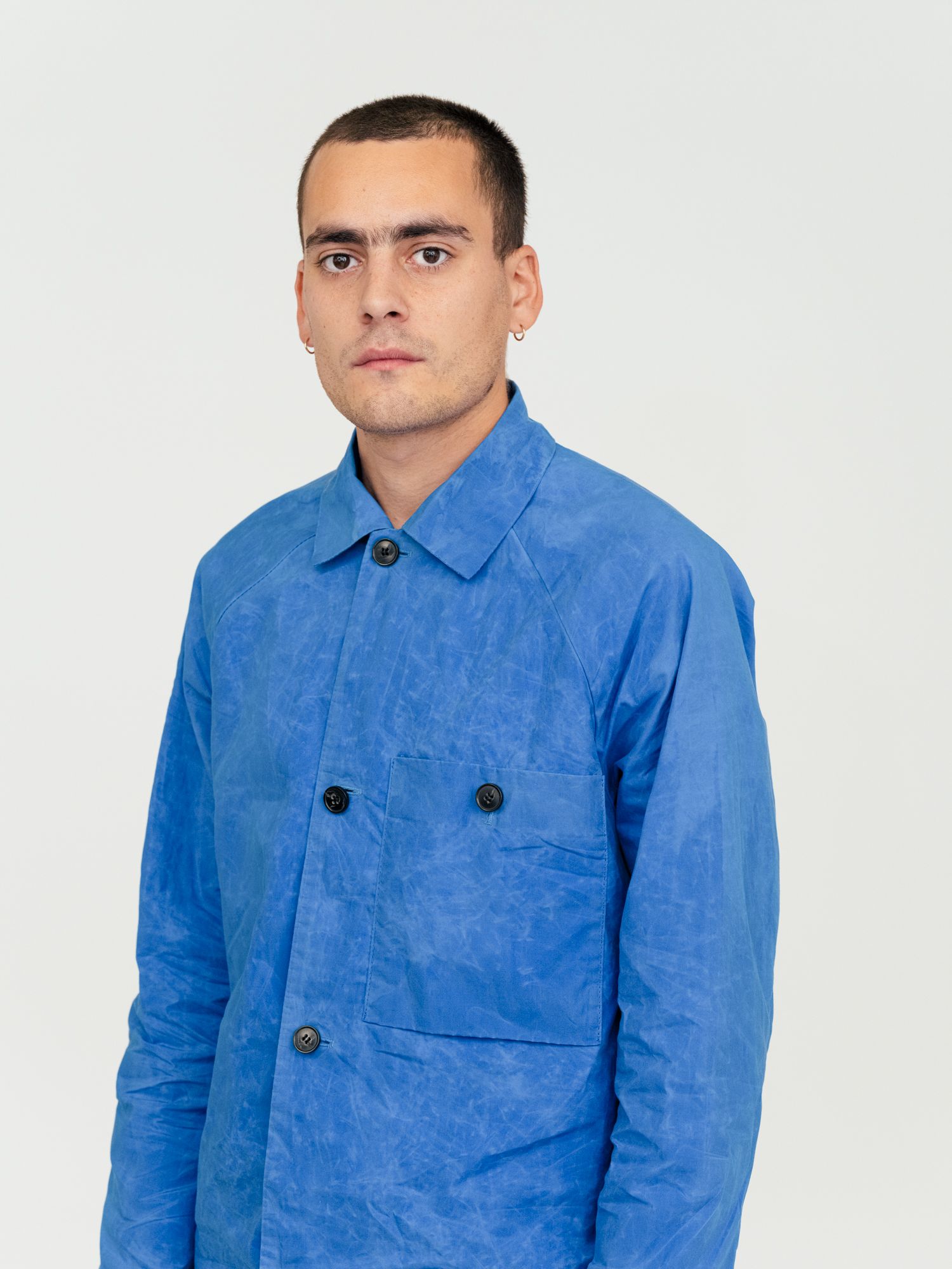 Overshirt with relaxed fit, featuring raglan sleeves, one chest pocket and logo earth horn buttons. Inside edging. Versatile expression for both inside and outside use. Unisex.