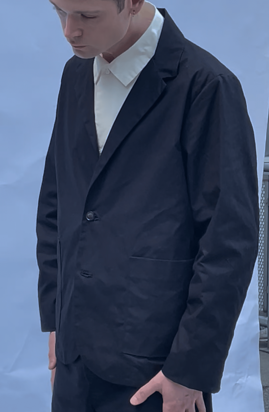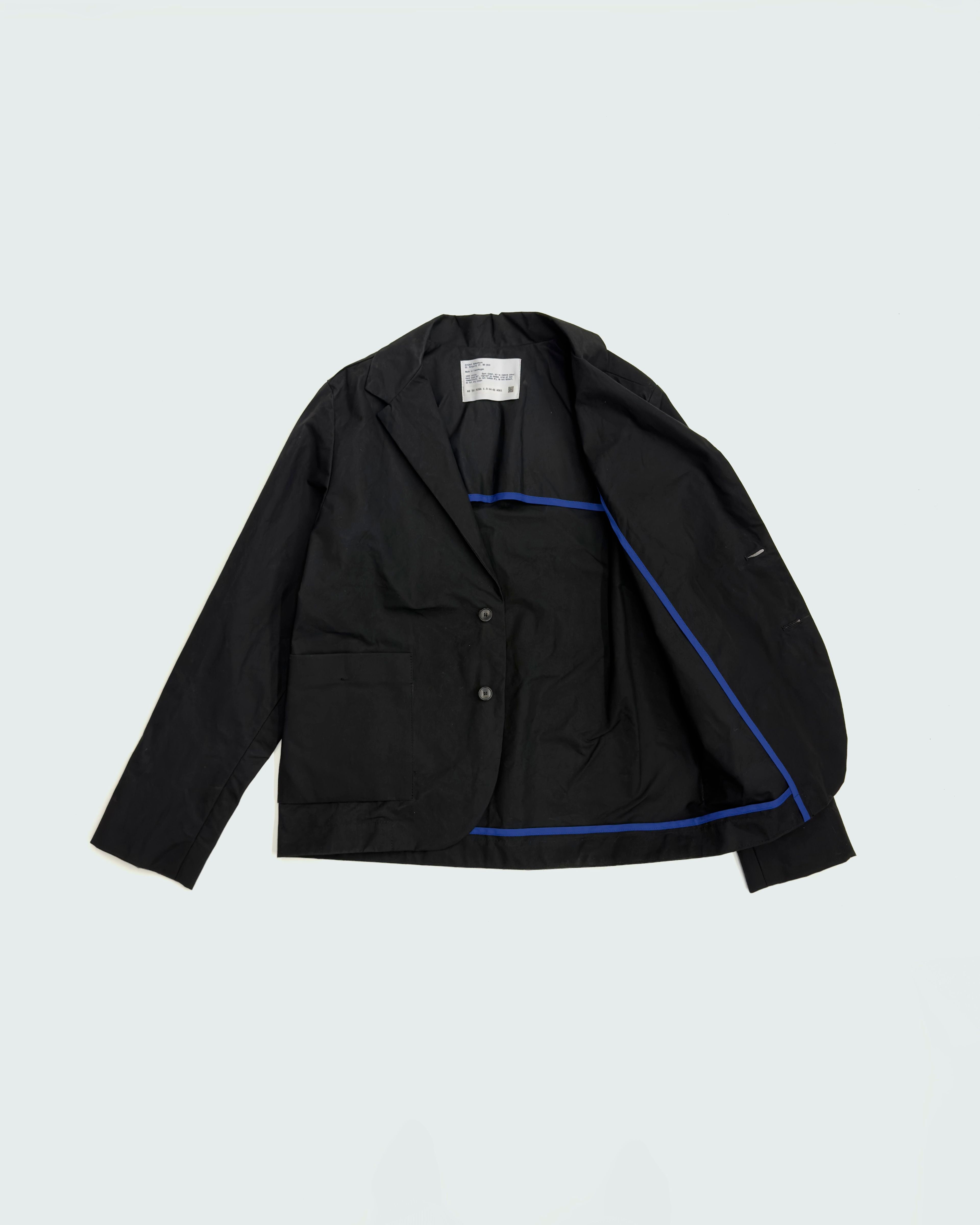 Blazer with relaxed and easy fit. Features two pockets, earth horn pockets and inside signature blue edging