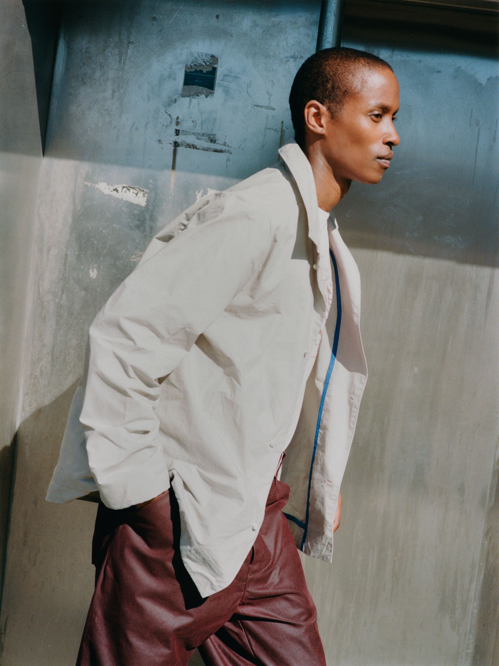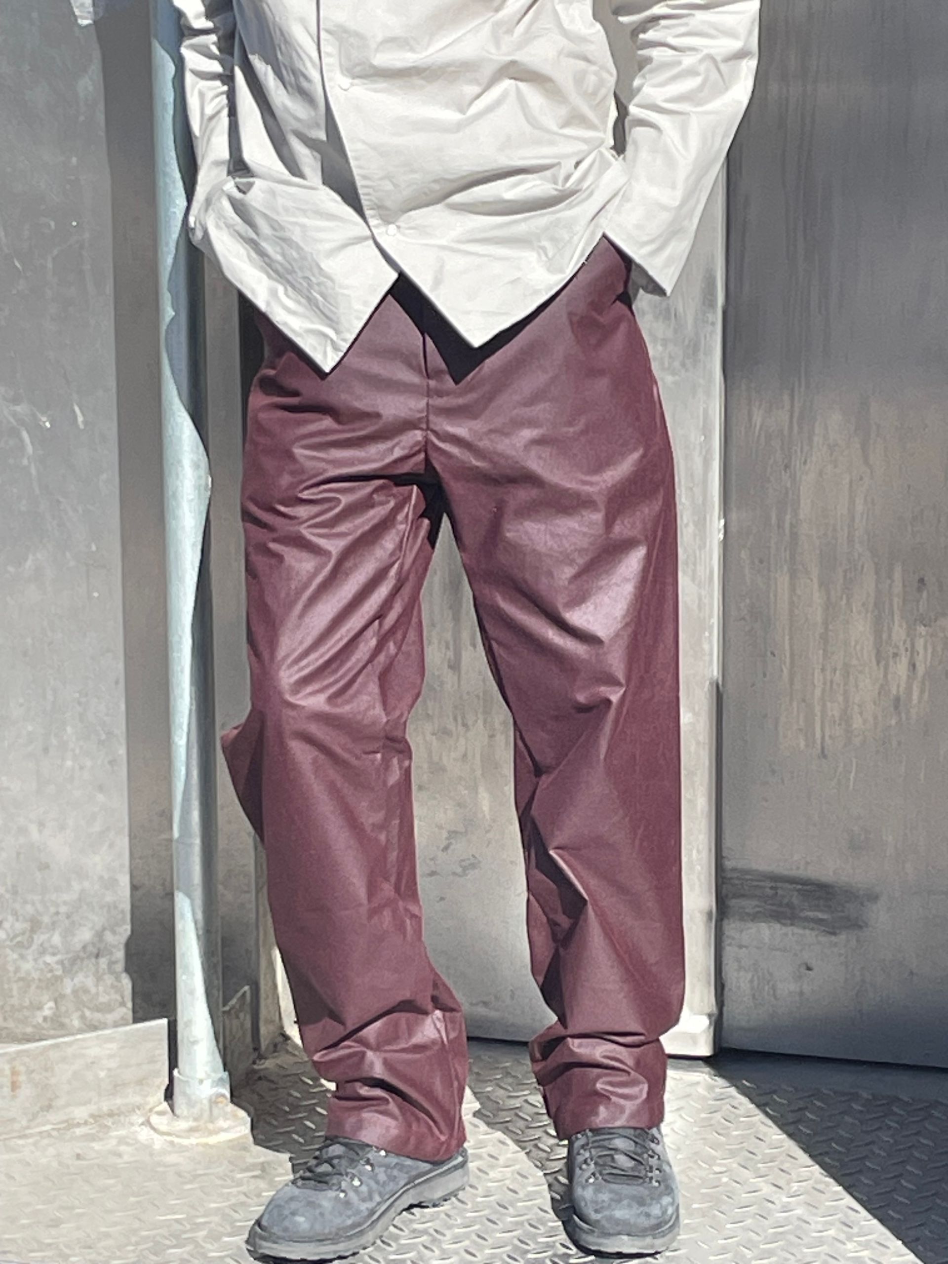 B1 are straight-legged trousers with slanted side pockets, double-stitched patch pockets, wide belt loops and a buttoned fly. It is the first pair of trousers we developed and from which all other B styles are modified. We created the fly as part of the front piece to stay clear of excessive fabric and overlock with this particular style. These are trousers for everyday use. They are perfectly casually fitted and go with practically anything, but still stand out with the particular slanted pockets.