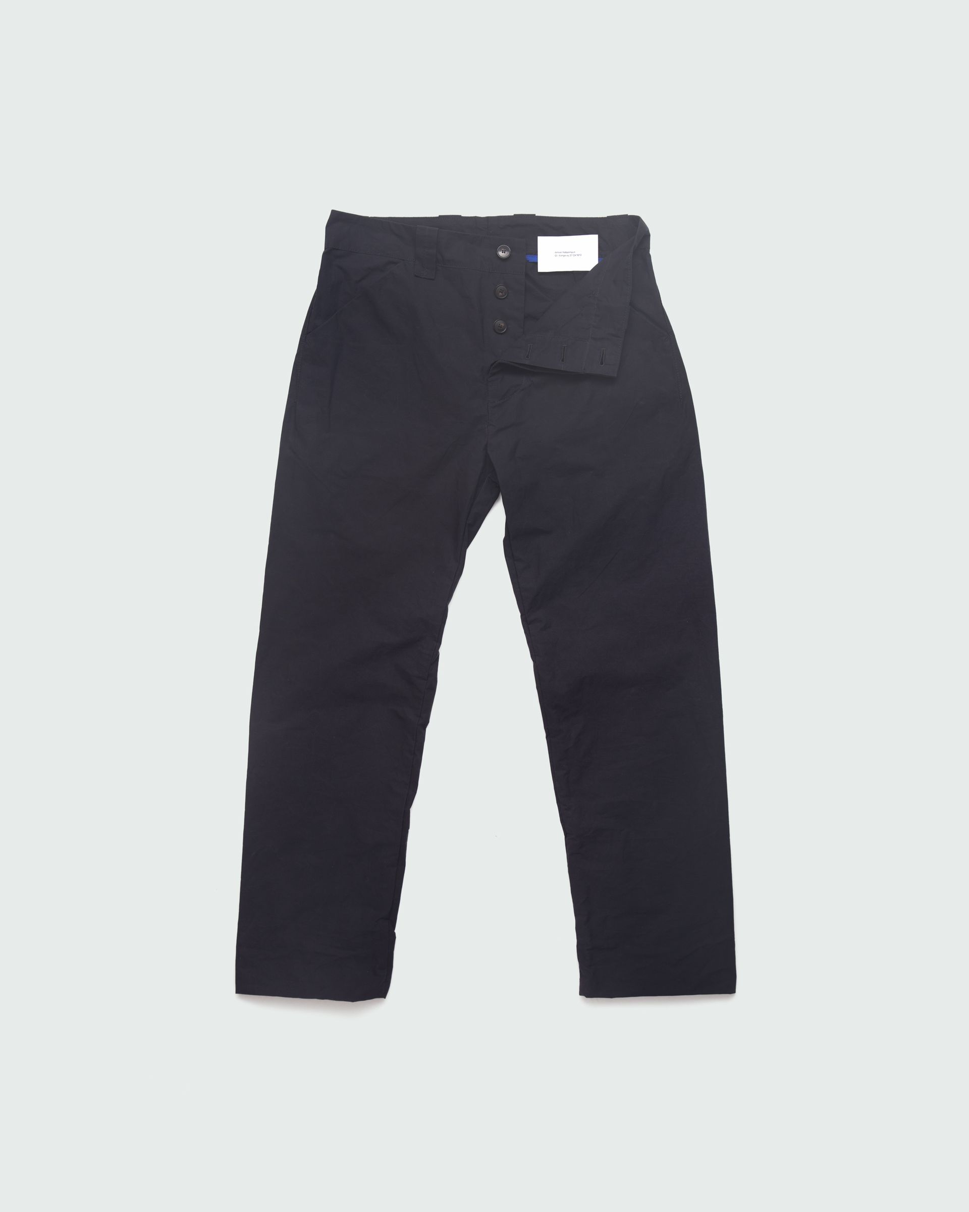 B1 are straight-legged trousers with slanted side pockets, double-stitched patch pockets, wide belt loops and a buttoned fly. It is the first pair of trousers we developed and from which all other B styles are modified. We created the fly as part of the front piece to stay clear of excessive fabric and overlock with this particular style. These are trousers for everyday use. They are perfectly casually fitted and go with practically anything, but still stand out with the particular slanted pockets.
